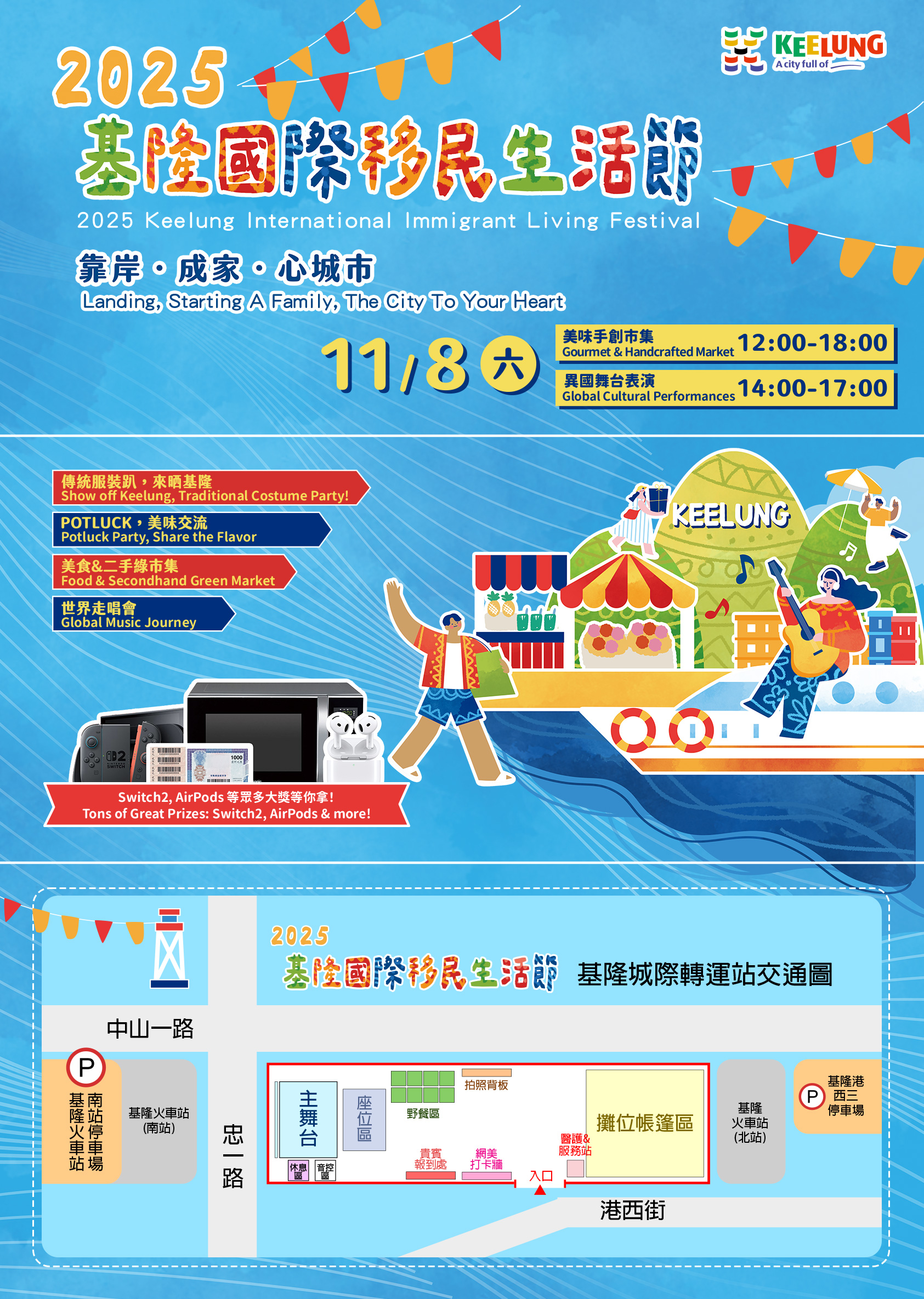 • 標題:「靠岸.成家.心城市」—2025基隆國際移民生活節, 11/8串起城市共同記憶。