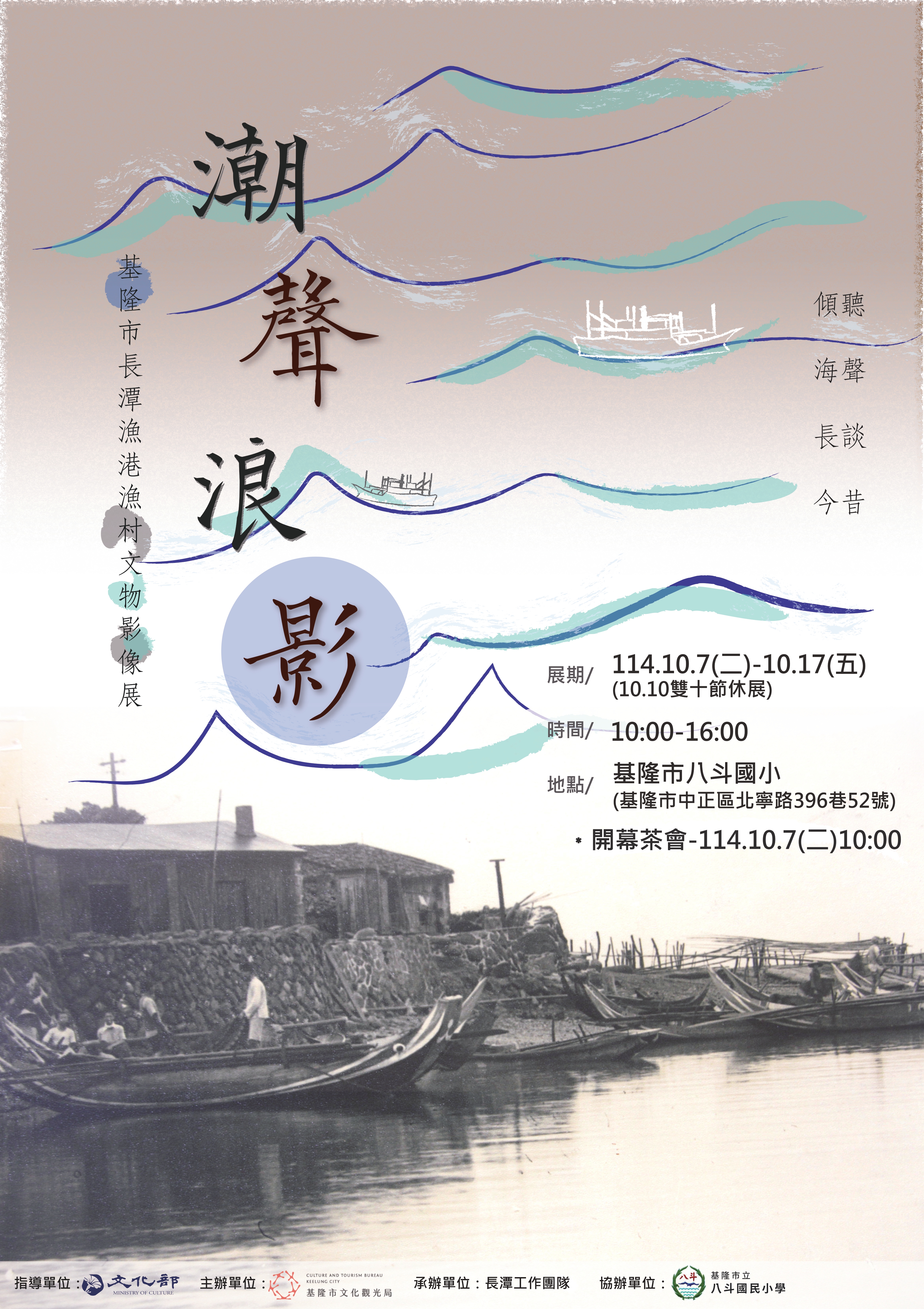 檢送「潮聲浪影──基隆市長潭漁港漁村文物影像展」海報 1式,詳如說明,請貴校惠予協助宣傳。